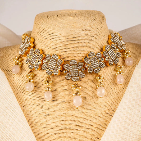 Floral Polki Blush Bead Choker Set